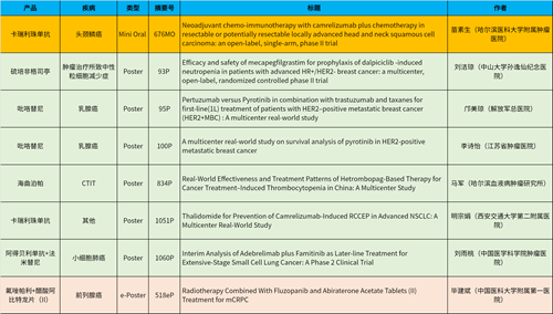 在头颈肿瘤、乳腺癌、肺癌、前列腺癌等多个疾病领域,卡瑞利珠单抗、阿得贝利单抗、吡咯替尼、氟唑帕利、法米替尼、醋酸阿比特龙片(II)等抗肿瘤新药相关研究一共入选了1项简短口头报告、4项壁报展示和1项电子壁报,彰显了金年会- 金字招牌医药强劲的研发实力。